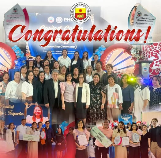 Muling naghatid ng karangalan ang Bayan ng San Rafael matapos itong hirangin bilang isa sa mga LGU Health Scorecard Green Achievers. Ang parangal ay patunay ng mahusay, episyente, at de-kalidad na serbisyong pangkalusugan na ibinibigay sa mga mamamayan.